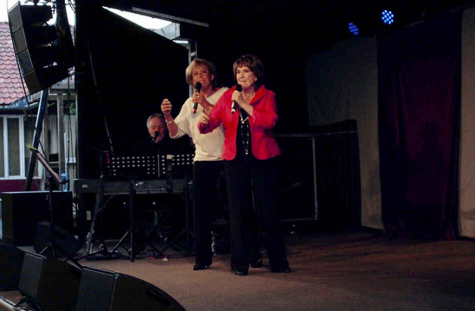 Ärtiga som få och på skyhöga klackar bjöd de – tillsammans med ackompanjatören Benneth Fagerlund på elpiano – publiken på en härlig show med många personliga och berörande texter. Flera av dessa var skräddarsydda för artisterna av kända textförfattare som t ex Lars Forssell, Cornelis Wreeswijk med flera storheter.