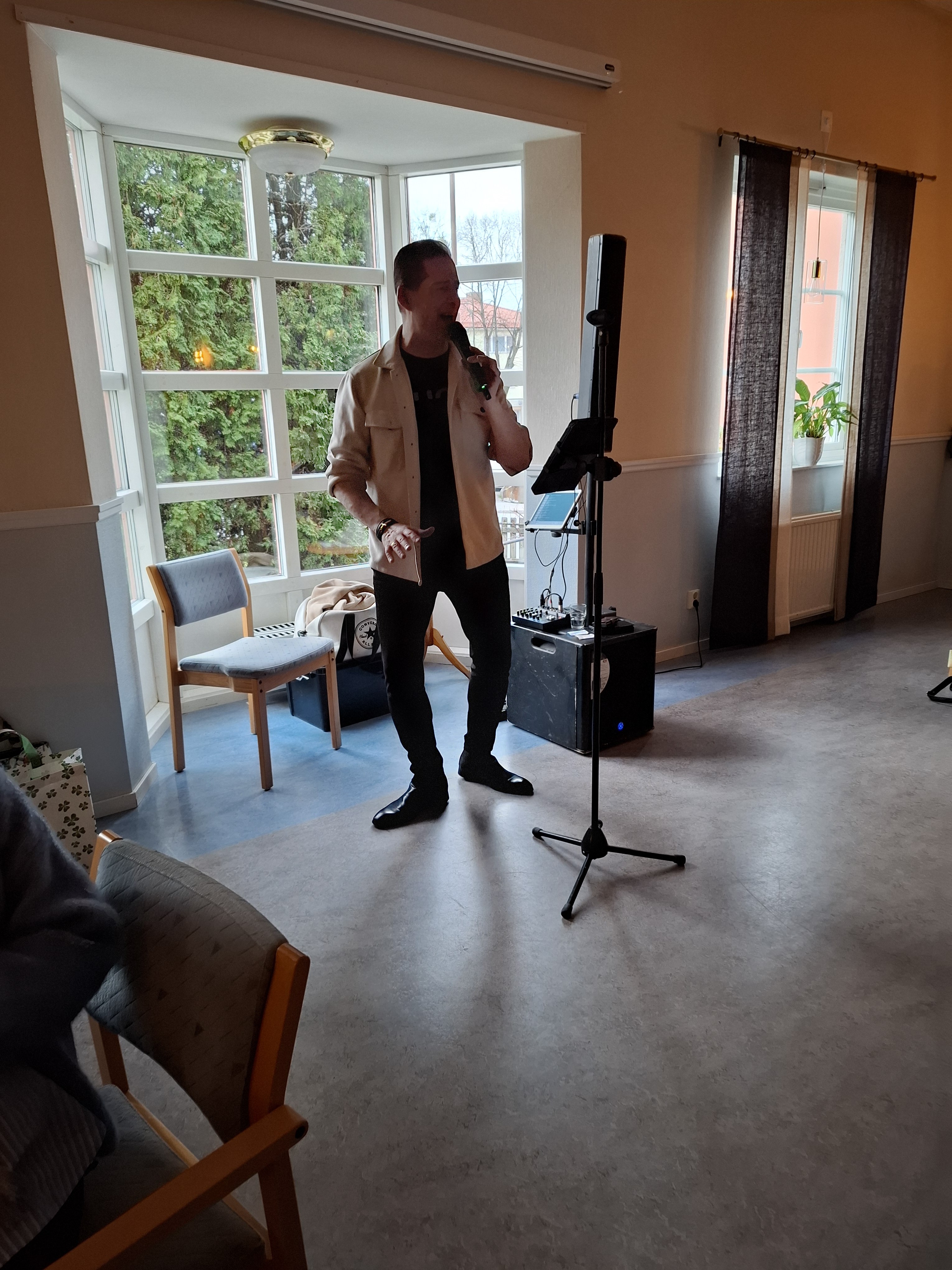 När vi hade ätit av allt det goda började underhållningen. Jonny började med att sjunga något från Lasse Stefans repertoar, därefter ”Please release me” av Engelbert Hamperdinck där sjöng vår egen Ann-Britt med ”jubel”, som följdes av många fina låtar några stillsamma men oj så vackra som ”In The Ghetto” även rockigare av Elvis.