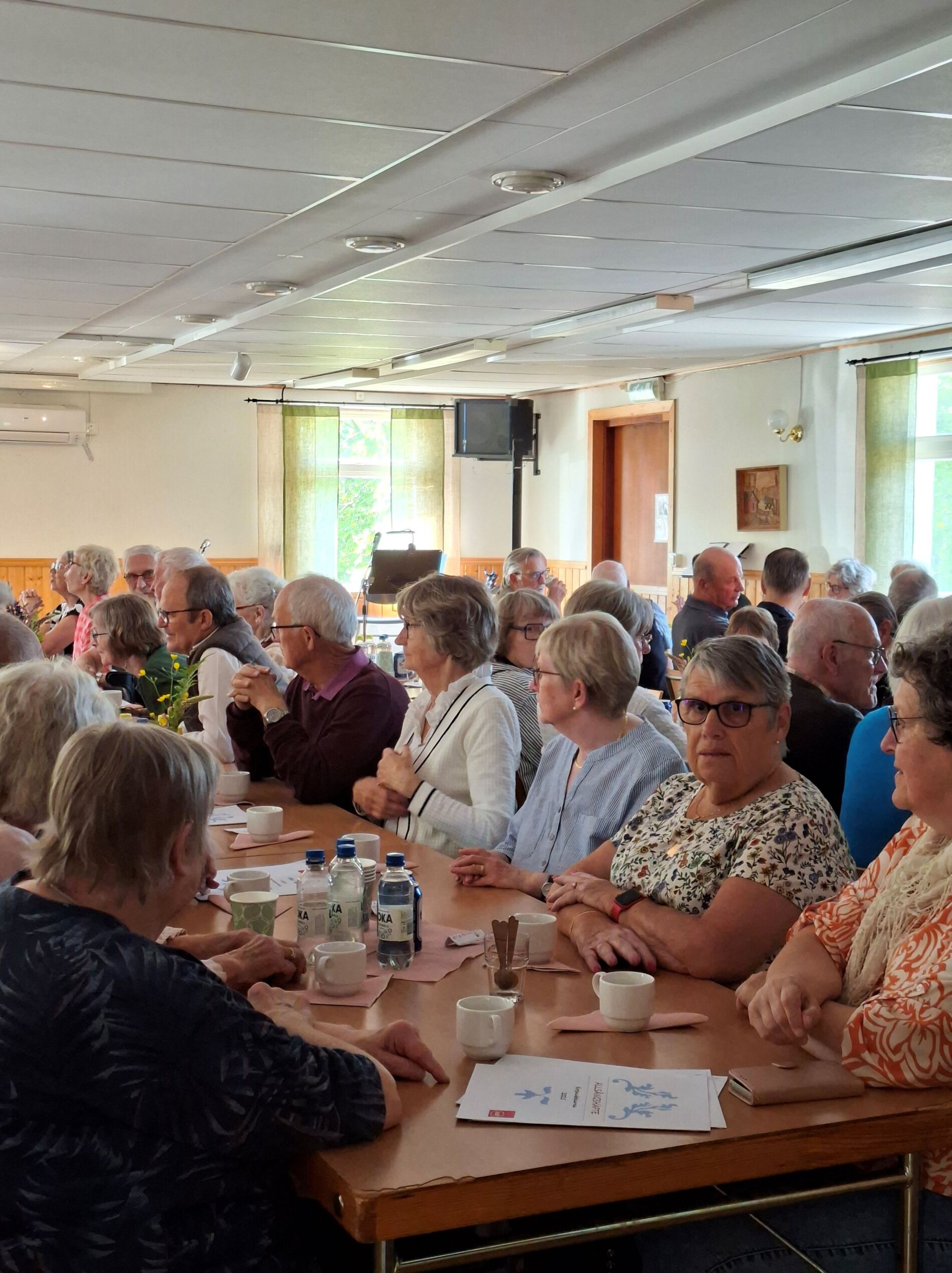 Efter en kaffepaus, som även innehöll drömtårta, så blev det några låtar till innan vår ordförande Olle Hult tackade för underhållningen och annonserade på dagens lottdragning. Som avslutning för dagen önskade Olle även en skön sommar och önskade oss alla välkomna tillbaka till höstens program.