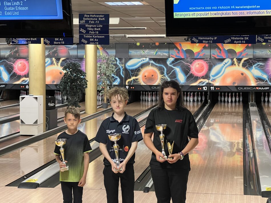 Från vänster: Isak Yngström (Team Pergamon BC), Wille Burström (IKW/Köping BK) och Alvin Fredriksson (Force Eskilstuna). Foto: Privat