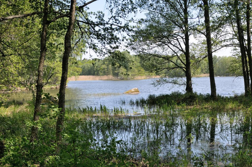 Första delen gick söderut igenom lundar av ädellövskog. Vi hade nog hoppats att här få se en mångfald av vårblommor men vi konstaterade att de flesta var överblommade med tanke på hur vädret varit tidigare. Liljekonvaljerna var på gång men de var ännu inte utslagna – vi hade tydligen hamnat ’mitt emellan’ de tidigare vårblommorna och de som kommer lite senare. När vi närmade oss Hjälmaren nådde vi ett område med den tidigare nämnda lövsumpskogen. Här var det ganska blött på en hel del ställen och vi fick göra en liten kringgående rörelse för att inte bli blöta om fötterna. När vi så nådde strandkanten fann vi en broförbindelse som ledde ut på ön Runnbäcksholmen.