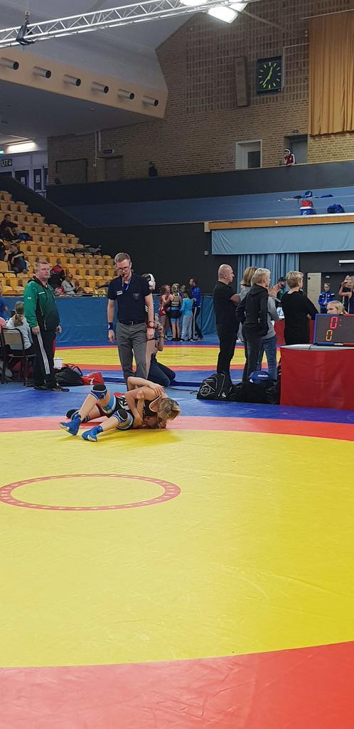 Det var Signe Foxell i Fä 54Kg med elva deltagare som tog hem andraplatsen. Efter tre övertygande vinstmatcher så stod Signe i finalen mot Hedda Kvåle från Skedsmo bryteklubb Norge.