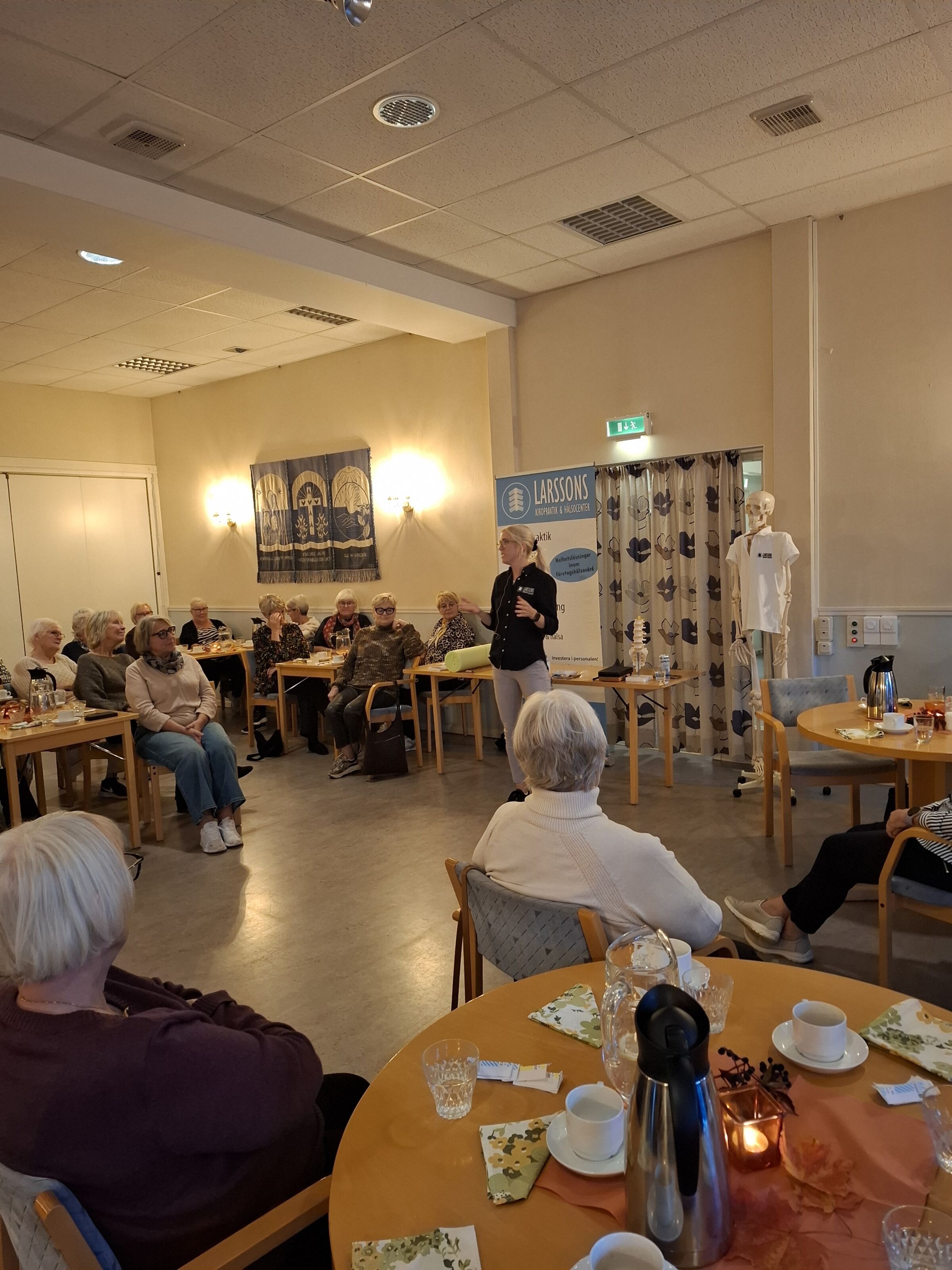 Frågestunden blev livlig och Malin fick verkligen svara på många och svåra frågor. Avslutningsvis ett gott ord på vägen att ”all rörelse smörjer kroppen”. Eva tackade Malin för en givande kväll med present.