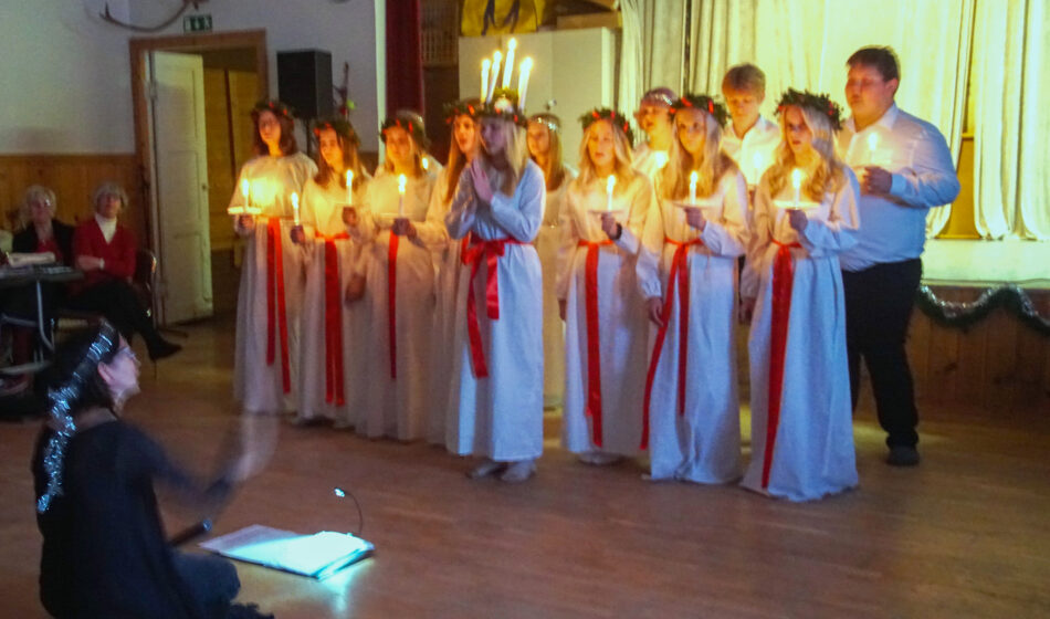 Leif Wall hälsade ett 50-tal medlemmar välkomna för att lyssna på Malmaskolans Lucia och Diakonikören under ledning av Anders Karlsson. En julstämning infann sig när Lucia-gruppen på omkring 14 medlemmar tågade in, sjöng med klara flickröster under ledning av Marie Stam som låg på knä och dirigerade kören. Sixten i kören sjöng solo, han hade en mycket bra röst och fick applåder för sitt framförande. De närvarande tackade med kraftiga applåder Luciakören och dess ledare.