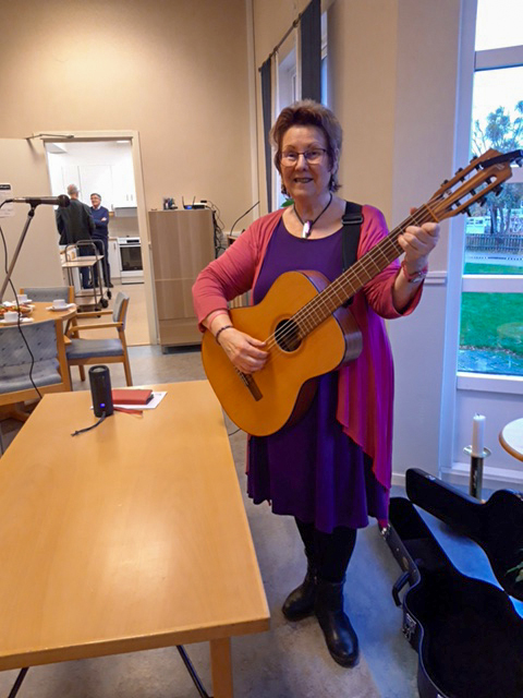 Ewa spelade också gitarr och bjöd på finstämd sång. Under en period av några år tonsatte hon många fina dikter. Idag är Ewa begravningsofficiant, ett uppdrag som hon trivs mycket bra med. Några positiva slutord fick vi också – ”Allt är möjligt hela tiden”, ”Det är aldrig försent att göra något nytt” och ”Njut av resan och ha kul!”