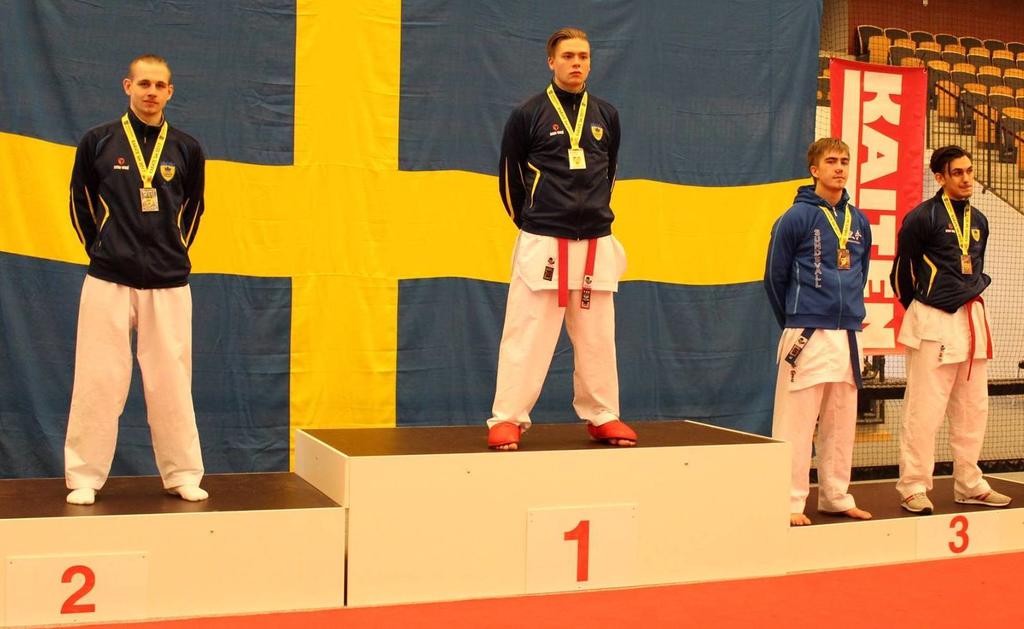 Förra veckan arrangerades Svenska Mästerskapen i Karate i Kristianstad. Jimmy och Alexandra Haag från Fellingsbro fick mycket fina placeringar. Jimmy, som just fyllt 18 och blev senior tävlade i kumite -75 kg för U21 och seniorklass. Båda klasserna hade flest starter i respektive kategori. Jimmy vann guldet i U21 mot Nicklas Weimer. I senior klassen mötte han William Engman från Sundsvalls sportkarate. Jimmy blev tyvärr diskad när det var sekunder kvar och han trampade utanför mattkanten. Det resulterade i ett silver i den klassen.