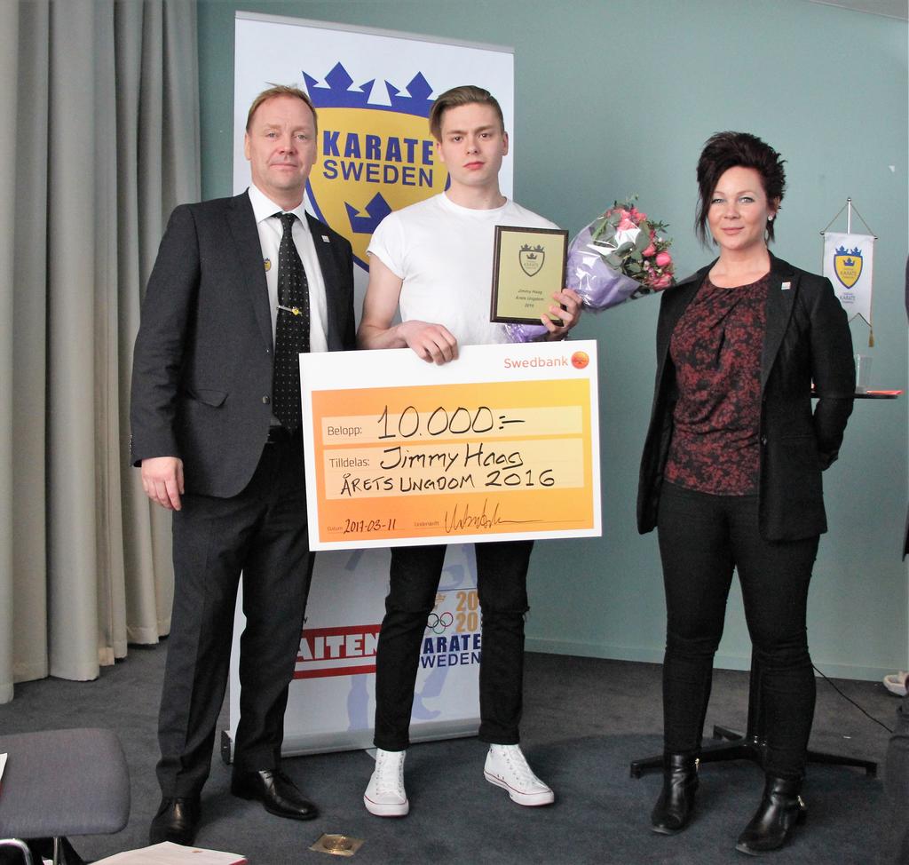 Jimmy blev utsedd till Årets ungdom 2016 av Svenska Karateförbundet samma vecka och fick ett stipendium på tio tusen kronor för sina framgångar (bland annat 4 SM guld, brons på NM och brons på World Youth Cup i Kroatien) och sitt engagemang för karate under 2016.