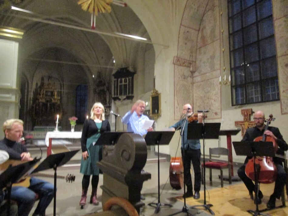 Vid söndagskvällens framträdande deltog Elin Jauring sång och fiol, Sven Jauring, fiol, bas och blockflöjt, Carl Bäckman cello, Kjell Dahlgren dragspel, Emil Jauring gitarr och Birgitta Rosenquist Brorson orgel och piano.