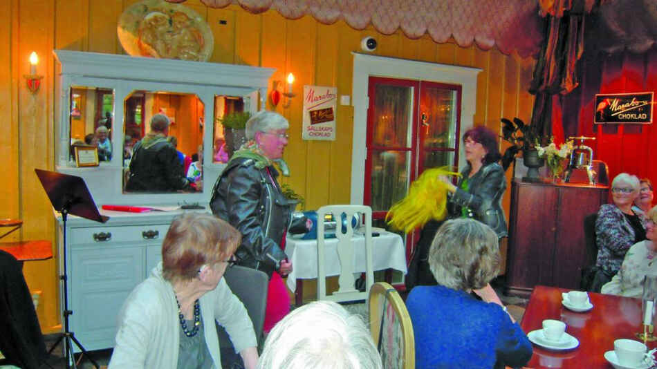 Nu började vi alla bli hungriga så färden gick till Mariefred och Gripsholms Värdshus där väntade en god middag och dryck. Som vanligt till kaffet underhöll Irene, denna gång var det rockiga toner som föll alla i smaken, även andra gäster på värdshuset.