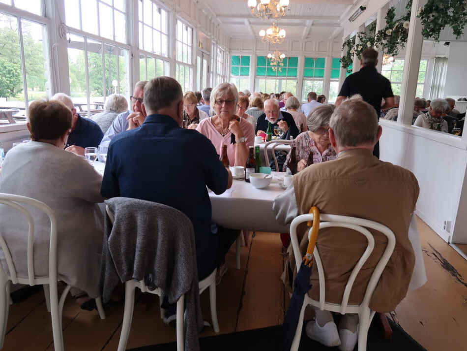 Sedan serverades lunch bestående av en silltallrik till förrätt och därefter grekisk pannbiff som huvudrätt. Det hela avslutades med kaffe och godbit. En mycket välsmakande lunch serverad av Stadskällaren.