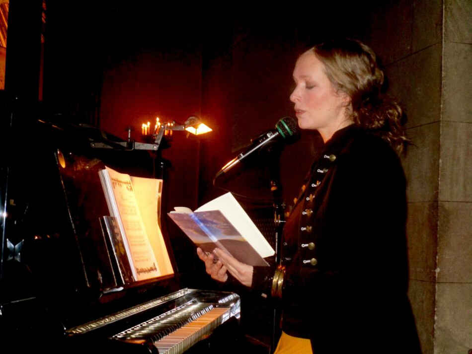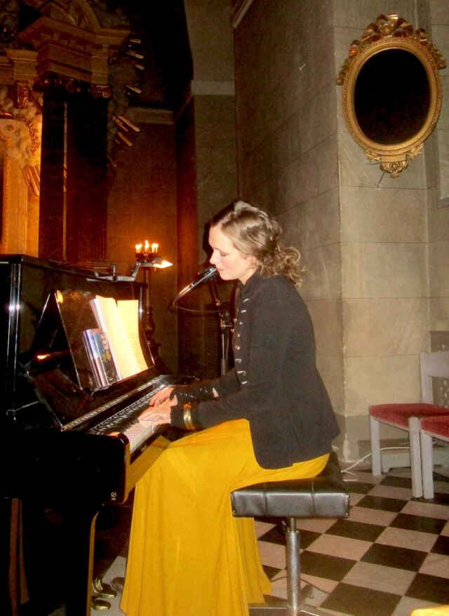 Elina har en mycket vacker röst och framför alla sånger med en sådan innerlighet och tydlighet att man absorberas helt av hennes framträdande. Hon är också en skicklig pianospelare och hennes sätt att ackompanjera sig själv gör mycket till slutintrycket. Mellan musiken reciterade hon några dikter av Carolina Lundgren och en gammal saga gav oss livsvisdom.