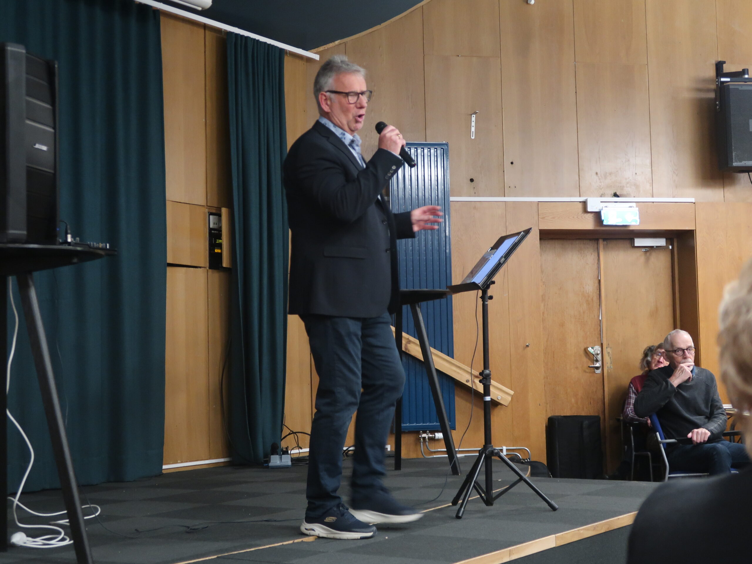 Medlemmarna bara strömmade till mötet i Medborgarhuset, flera bord och smörgåsar fick ordnas fram i all hast för att alla intresserade skulle få någon plats att sitta och fika på. Kanske var det den välsjungande engelsmannen från Vintrosa, Gary D Pearson, som drog publik. Gary bjöd på en bred repertoar med låtar från 50- och 60-talet där många olika idoler stod för originalen såsom: Elvis, Perry Como, Tom Jones, Cliff Richard, Neil Diamond, Frank Sinatra, Paul Anka men även ”vår egen” Darins sång -En säng av rosor- fick vi njuta av. Publiken tackade med en varm applåd för ett mycket bra och trevligt framträdande. Vi hoppas på att han kommer till oss igen och till dess har han lovat att öva på lite mer höftvickningar a´ la Elvis.