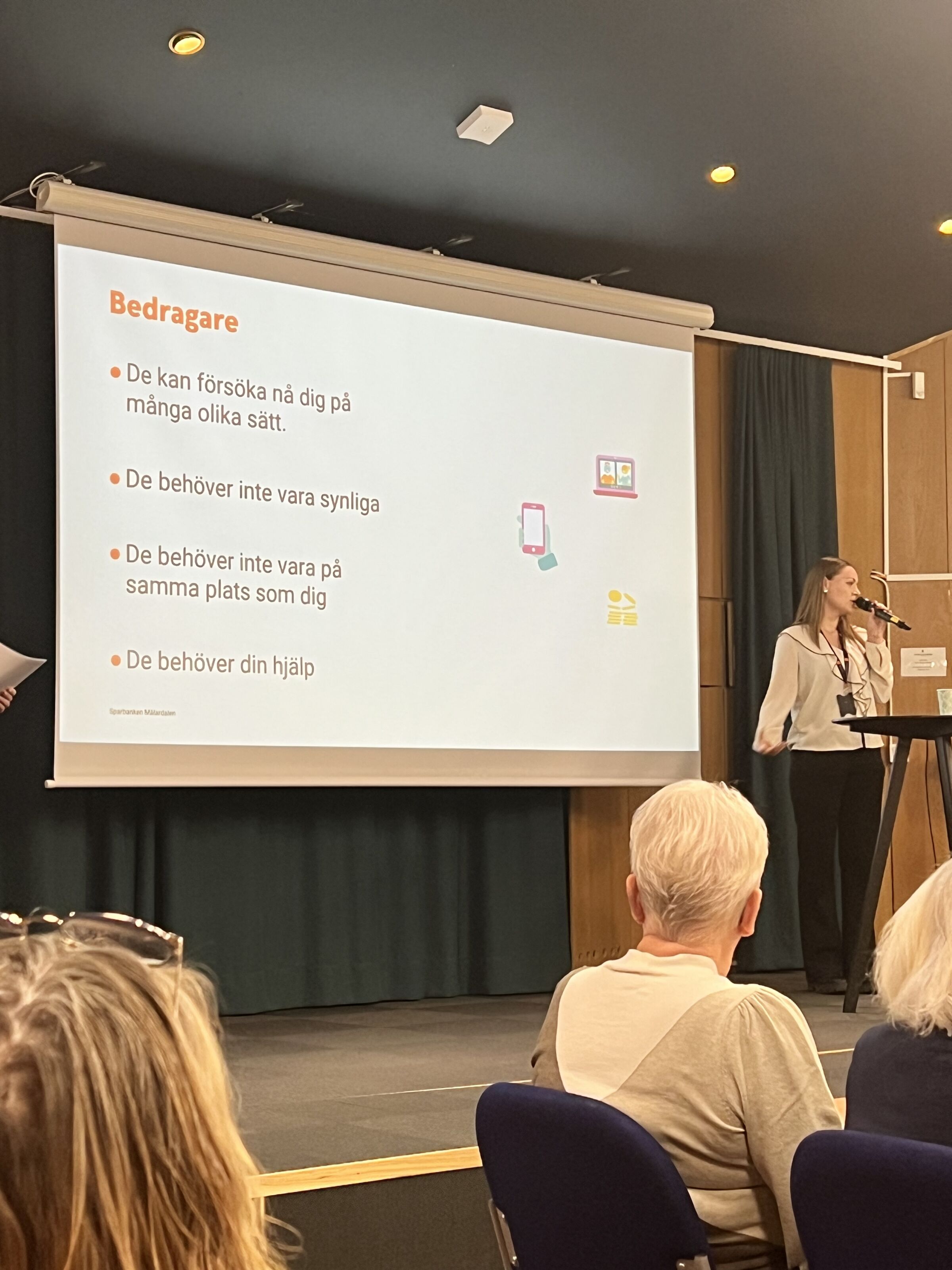 Därefter var det dags att överlämna till Sparbanken Mälardalen som informerade och svarade på frågor angående framtidsfullmakt, testamente och bedrägerier. Ämnen som ständigt är aktuella att ha koll på. Är man osäker ska man inte tveka att ta kontakt för avstämning, att man har gjort rätt och förstått vad det innebär.
