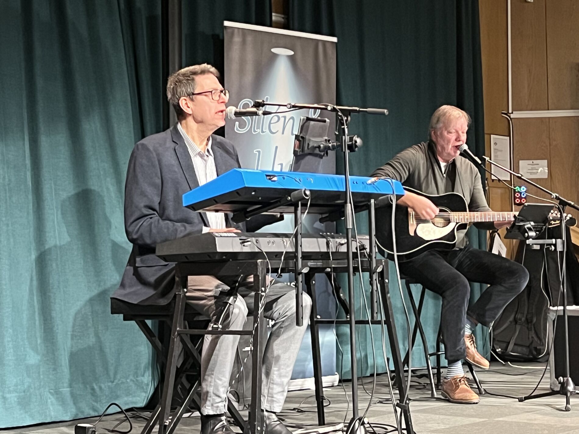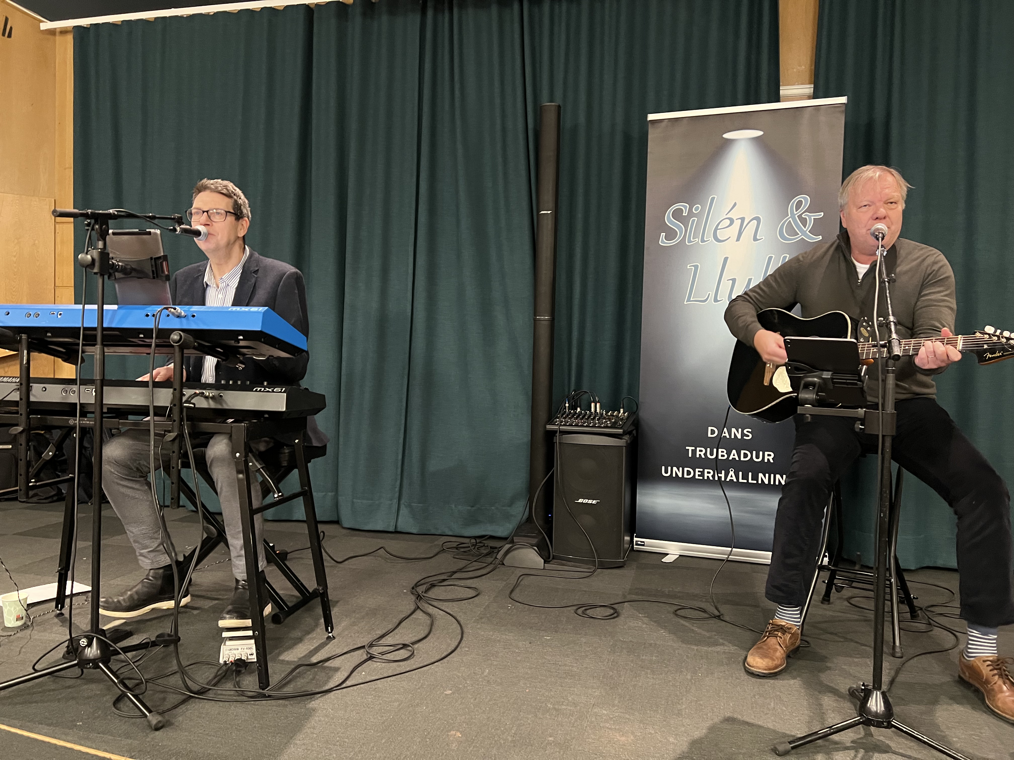Därefter överlämnades till trubadurerna Silén och Llull, som spelade och sjöng många välkända melodier och texter, vilket gjorde att de flesta kände för att sjunga med. Efter en paus med fika, samkväm och sorl i salen, blev det en stund till med musik och sång.