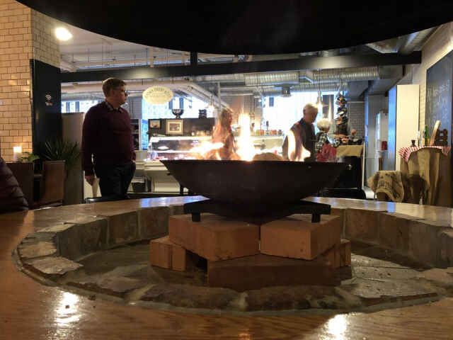 Vi satte oss sedan vid bord och fortsatte provsmakningen av andra sorter. Inslag av både animaliska och vegetabiliska rätter ställdes fram och sedan avslutades allt med kaffe från egna rosteriet och en god kaka.