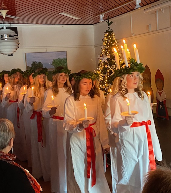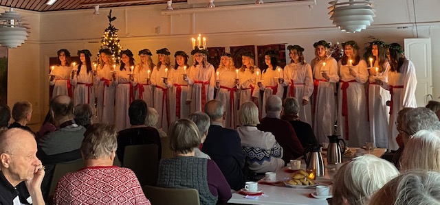 SPF Seniorerna Köpingshus fick besök av Lucia med tärnor på årets sista medlemsmöte den 6 december. Elever från Karlbergsskolan sjöng vackra julsånger under ledning av Magdalena Jogevall. Ett mycket uppskattat framträdande!