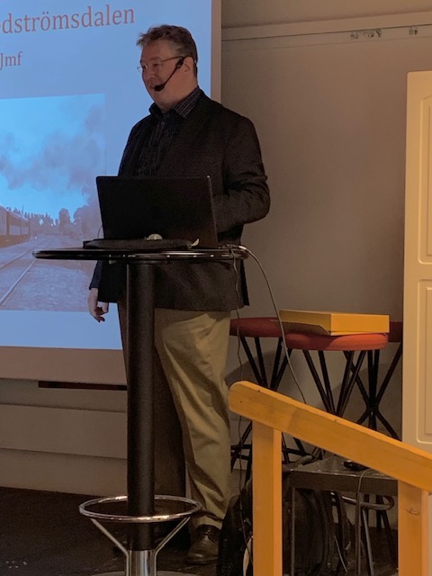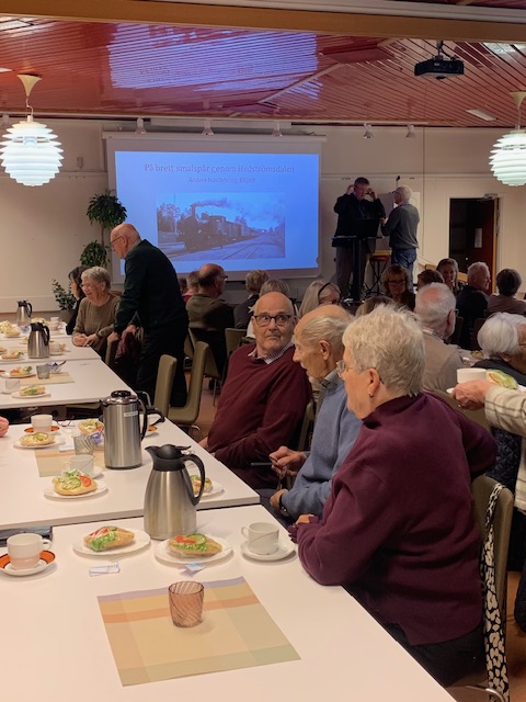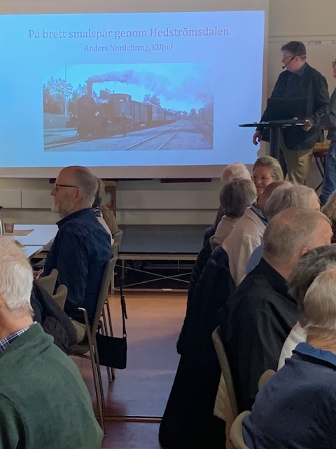 Ordförande Per-Åke Moe hälsade Anders Nordebring välkommen till SPF. Anders tog oss med på en resa längs med KURJ-banan Köpings-Uttersberg-Riddarhyttans järnväg. Den hette först KUJ-banan, gick då till Uttersberg, bygget startade 1863, och sedan kom en förlängning till Riddarhyttan 1880. KUJ och URJ blev KURJ 1911.