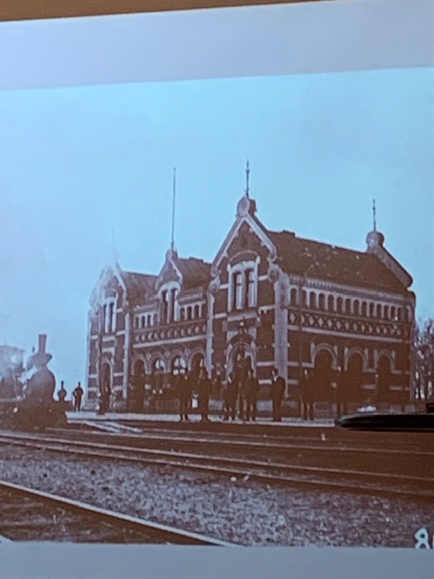 Där Athos ligger idag var Köpings gamla station, byggd 1865, lokstallet ritade Theodor Dahl, men det finns inte kvar idag. Däremot finns lokstallet kvar. Köping nya station byggdes på 1930-talet. Det var många stationer tåget stannade vid och en del finns kvar upprustade idag.