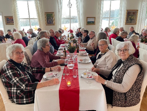 Lite småfrusna satte vi sedan oss på bussen för att åka och äta julbord på Åkerby Herrgård. Vi blev serverade tre tallrikar med allt vad som hör julen till. Det var rikligt tilltagna portioner som smakade väldigt bra. Det gick också att förse sig med lite extra värmande från baren.