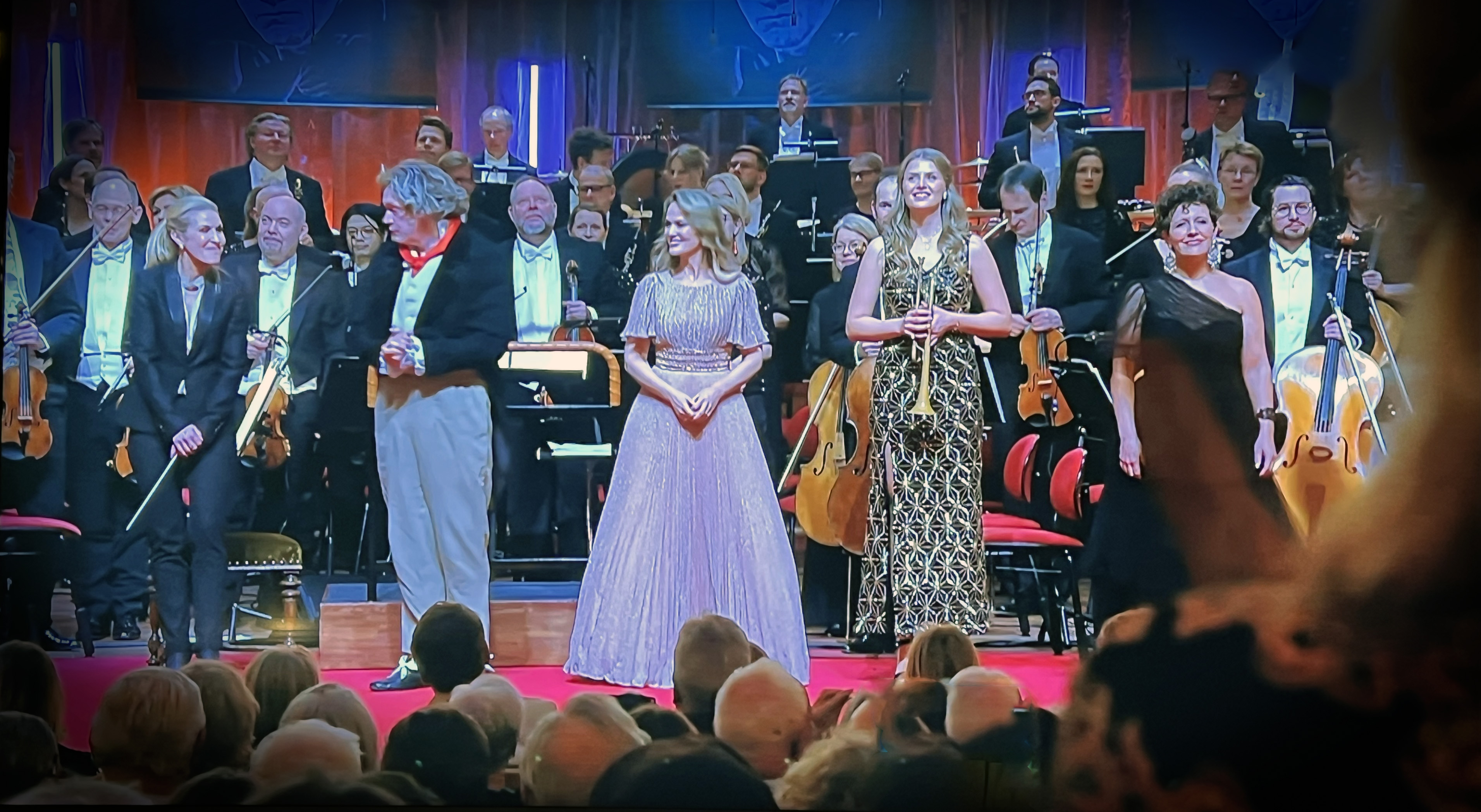 Vi bjöds på en fantastisk konsert med Radiosymfonikerna och Radiokören under ledning av den norska dirigenten Cathrine Winnes. Våra sinnen förstärktes av sopranerna Mari Eriksmoen och Julia Sporsén samt trumpeteraren Ellinor Bengtson. Till vår förvåning hade Beethoven på något förunderligt sätt återuppstått och gestaltades av Jonatan Unge som underfundigt ledde oss genom konserten.