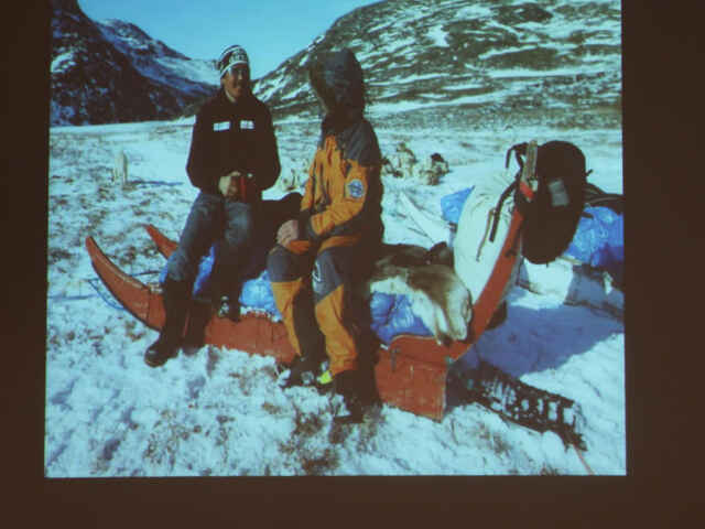 Därefter berättade han om Grönland där han träffade/umgicks med befolkningen och bl a fick prova på hundspann. Han berättade också att man avlivade hunden/hundarna efter 5 år och sydde byxor av skinnen!