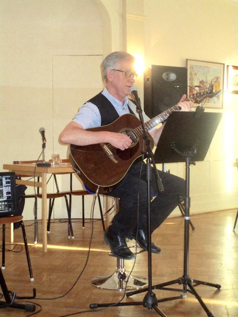 Föreningen serverade kaffe med läcker smörgås och trubaduren Per Anders Fallin bjöd på visor i två omgångar. Populärt var att han hade med den kända valsen om staden vid Arboga för att hedra publiken. I övrigt omfattade repertoaren både amerikanska country-sånger, svenska visor och rocklåtar och även några låtar med musik och text av honom själv.