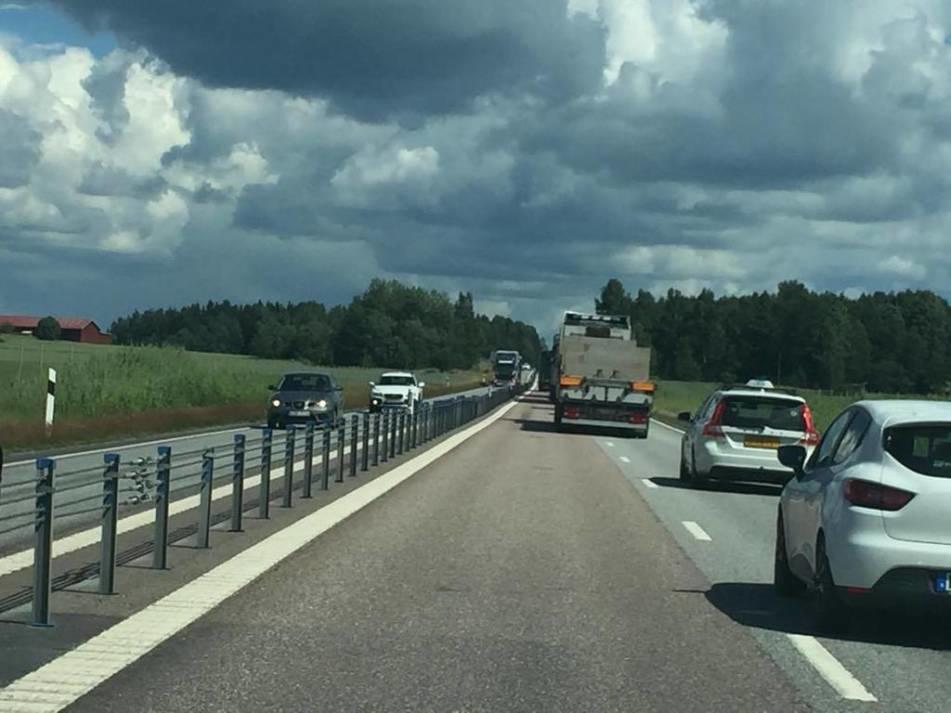 Nu rullar trafiken på E 18 igen. FOTO: ARKIV