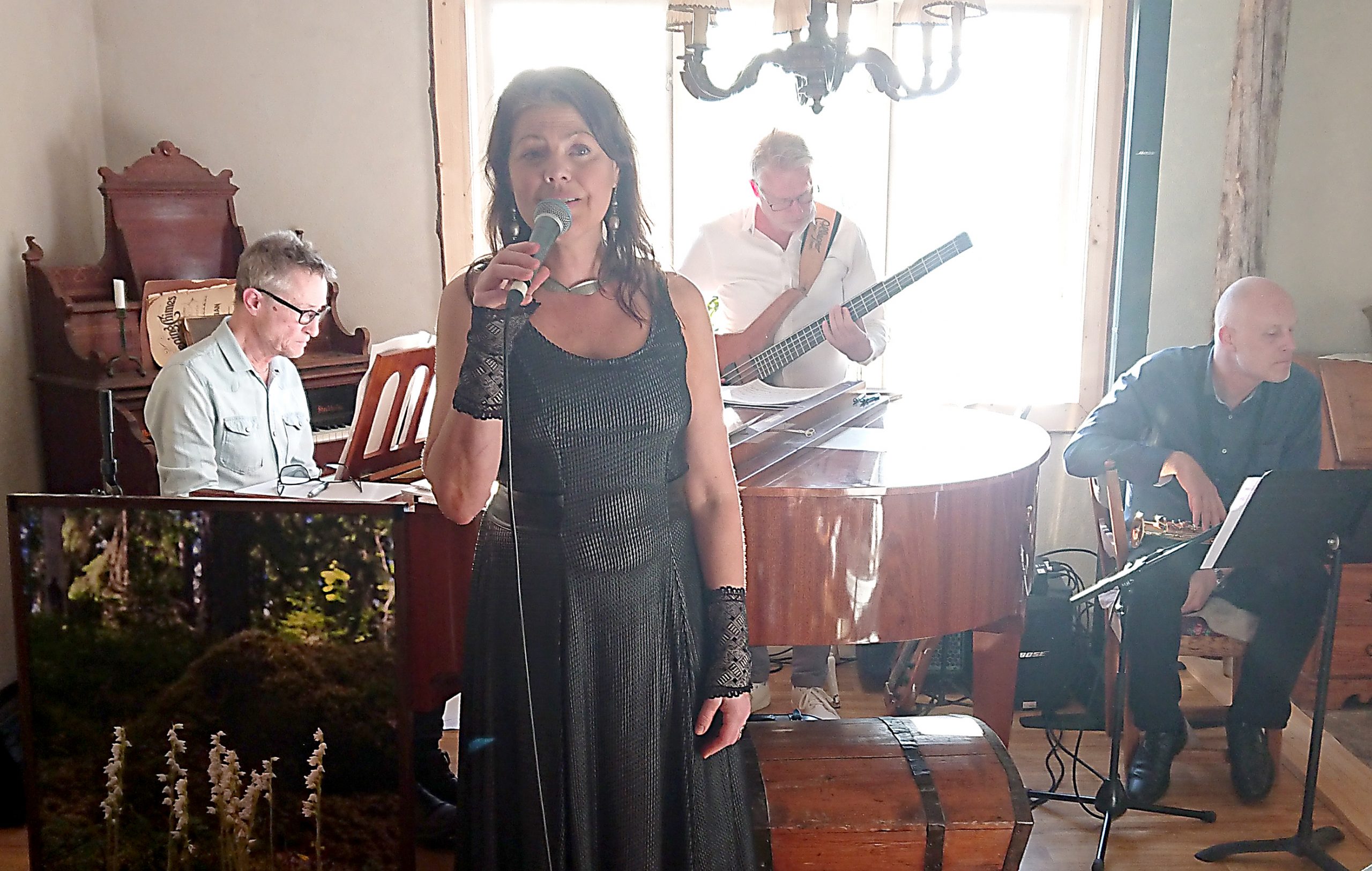 I lördags kväll var det premiär för Kafé Frid o Fröjd, med musikunderhållning av Lina själv och hennes tre trogna musiker Bror Engström på piano, Stefan Bäcklund på bas och Jörgen Paulsson på sopransaxofon.”Ni är lycka i mänsklig form!”, hyllade Lina sina musiker i slutet av spelningen.