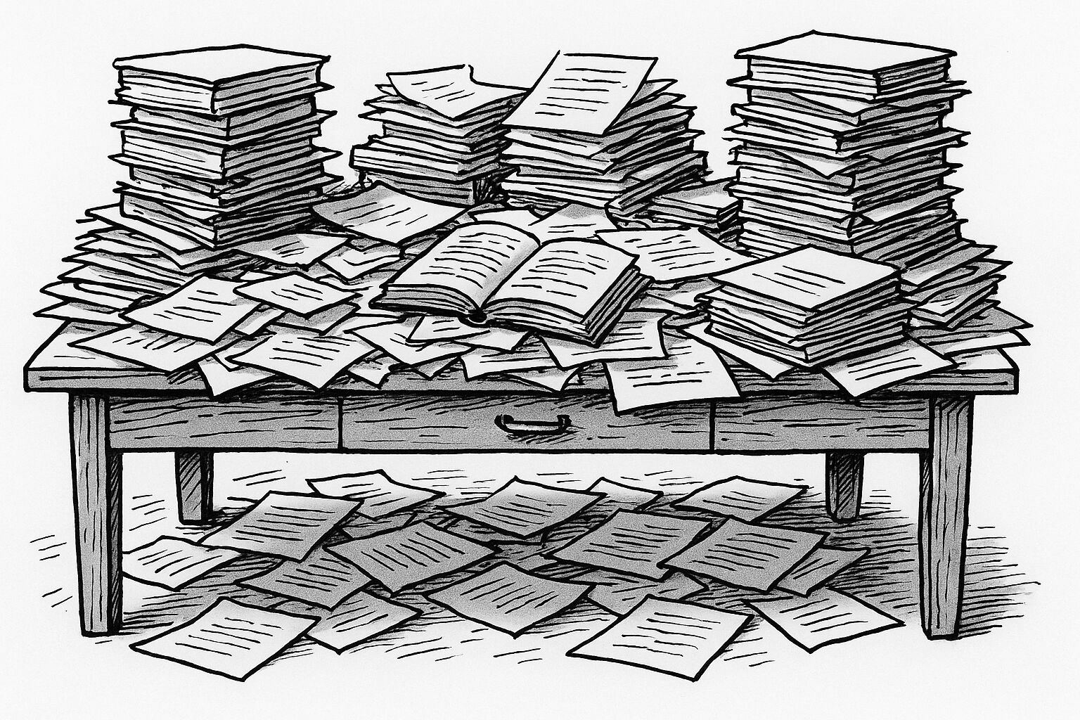 Jag måste bekänna…papper, tidningar och böcker har en alldeles tydlig tendens att spridas över alla ytor, i alla rum, där hemma. Inte bara på mitt skrivbord.