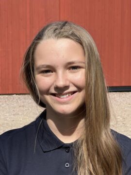 – Har ridit på ridskola sedan jag var 4 år. Jag har en D-ponny som jag tävlar med, mest hoppning. Min ponny heter Barry och är en Conomara. Vill utveckla min ridning här, ska bli kul att få rida olika hästar. Först vill jag jobba som hästskötare utomlands. Sedan får vi se.