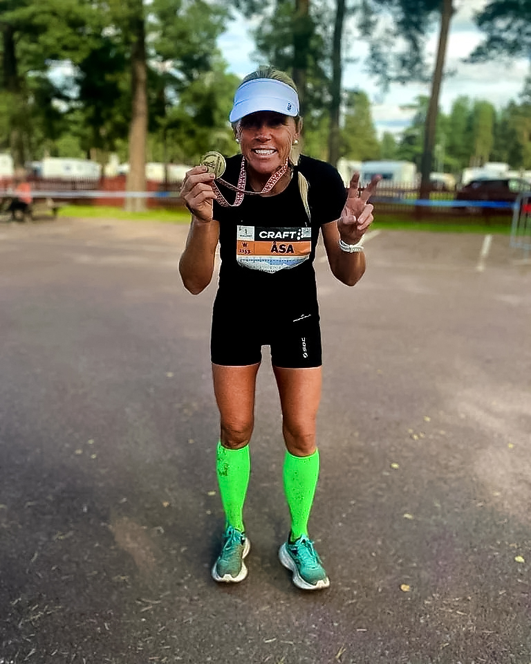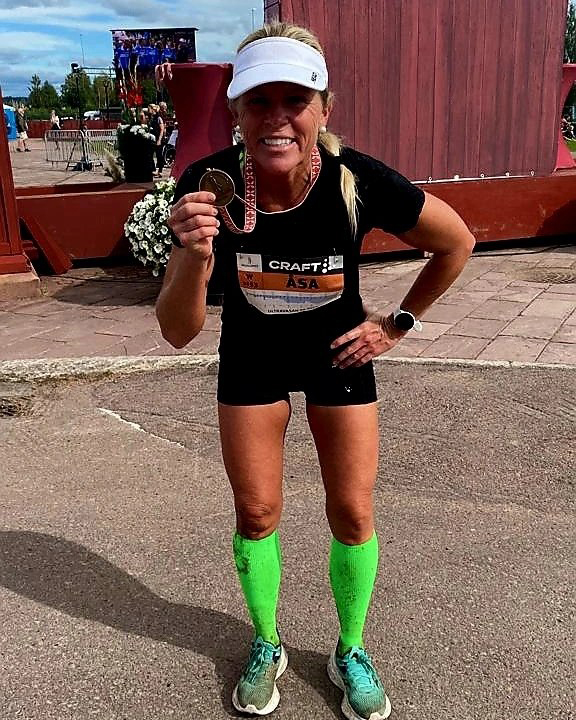 – Jag är sanslöst nöjd och stolt över mitt lopp. Jag kom i mål på nio timmar och 45 minuter och tog hem guld i damer 50 av cirka 50 stycken tävlande. Jag kom på 22:a plats i damklassen totalt av drygt 400 stycken och placering 120 totalt av alla damer samt herrar av drygt 1 000 som tog sig i mål. Det var brutalt jobbigt och jag har aldrig någonsin varit så trött och sliten efter ett lopp eftersom det även blev 20 grader varmt redan på förmiddagen. Jag var förvisso både nöjd och extremt trött även förra året. Men underlaget var tuffare i år och det tog enormt mycket energi, berättar Åsa.