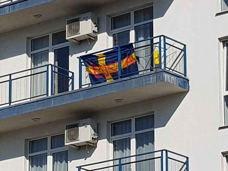 Jag är ju van att den svenska flaggan är hissad i Busta, här hänger den snyggt och prydligt på vår balkong.