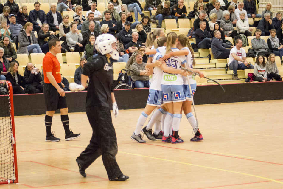 Mira Wickman reducerade till 1–4 innan Jessica Carlsson dubblade VM:s målskörd. Hemmalaget hade också gott om chanser till en 3–4-reducering, men i stället blev ett individuellt misstag kostsamt och hemmalaget gick till den sista periodvilan med ett tremålsunderläge.