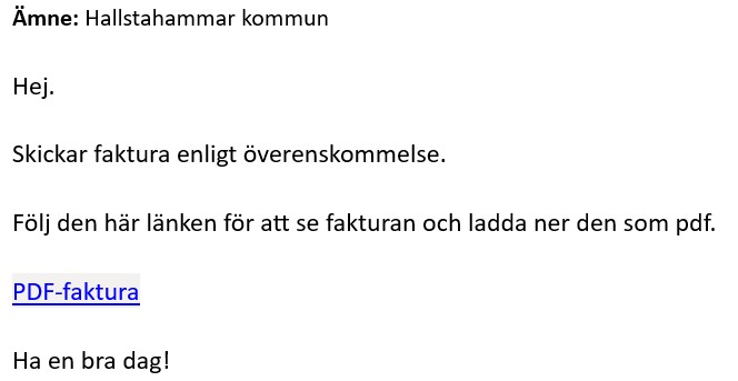 ”Detta utskick är ett phishingmejl och har du fått en sådant e-post ska du radera meddelandet och inte klicka på länken. E-postmeddelandet kan ha skickats till både företag och privatpersoner”, skriver kommunen på sin hemsida.