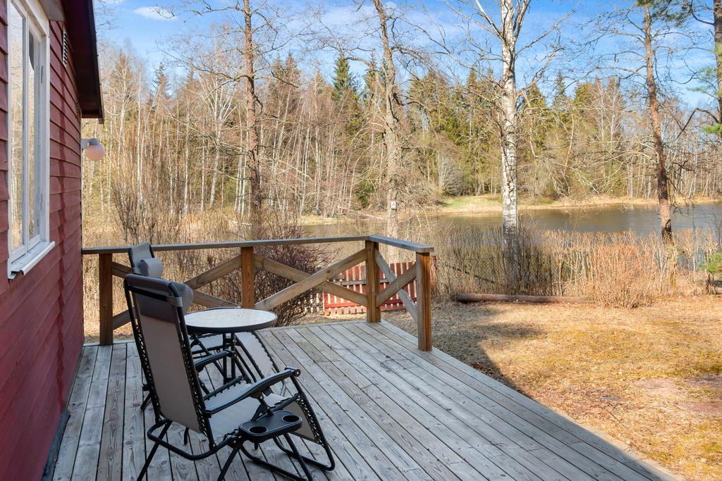 Stugan om ca 52 kvm har ett rymligt sovrum och en sovalkov. I vardagsrummet finns en braskamin, och i köket en vedspis, båda fungerar och används. Från matrummet njuter du av utsikten, och det inglasade uterummet.