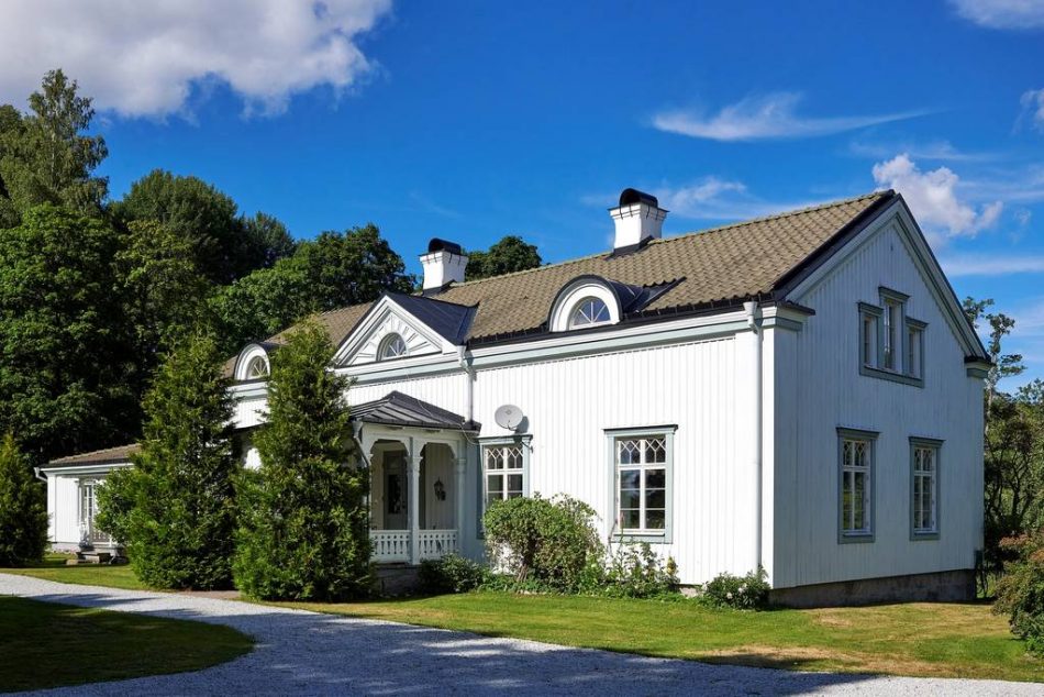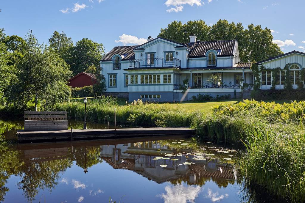 Den pastorala idyllen runt denna stora, herrgårdsliknande villa från 1880 är som hämtad från en film i klassisk bruksmiljö. Gisslarboån flyter fram och vidgar sig till en liten sjö framför huset. Den egna bryggan sticker ut över vattenytan och en liten träbro leder ut till en ö med ett klassiskt lusthus. Huset är om ca 500 kvm fördelat över åtta stora rum, tre badrum samt tre separata WC .