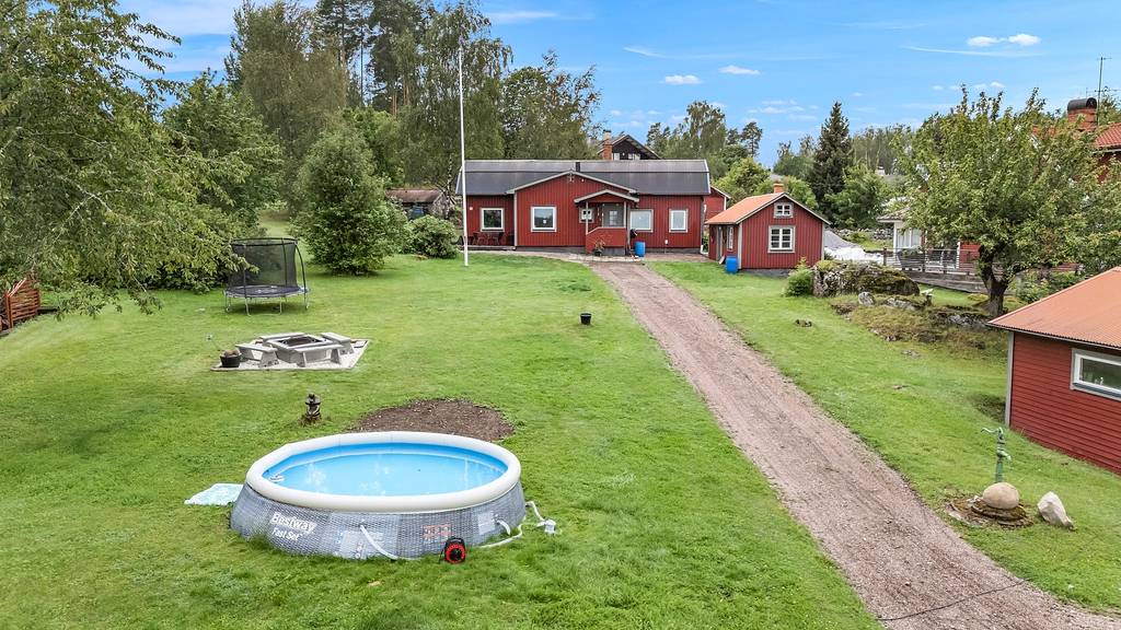 Detta stora och välplanerade hus erbjuder generösa ytor både inne och ute. På entréplanet möts du av ett stort och smakfullt renoverat kök (2025) med gott om arbetsyta och plats för hela familjen. I anslutning finns vardagsrum med en kamin. Här finns också ett badrum, bastu och en praktisk tvättstuga. Övre plan rymmer fyra sovrum, varav ett är extra stort med en vacker kakelugn (går ej att elda i) som skapar en rustik och hemtrevlig känsla. Här finns även ett separat WC samt en inglasad balkong – en riktig favoritplats där du kan njuta av morgonkaffet med utsikt över sjön.