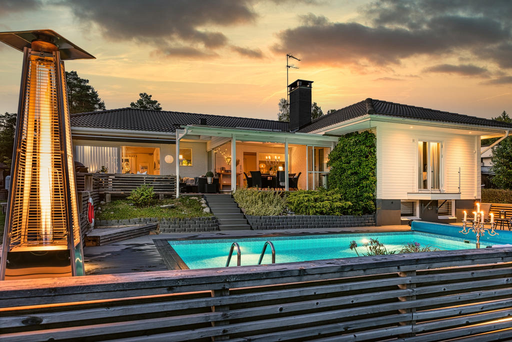 Åttarumsvilla om 125+147 kvadratmeter med en inbjudande uteplats och pool. Huset har genomgått en förvandling under senare år med löpande renoveringar och ändrade planlösningar. Huset är beläget på en lugn gata utan genomfartstrafik med närhet till skolor och naturen.