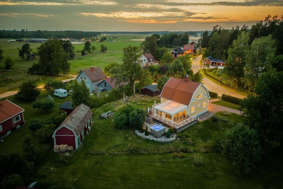 Villan, som renoverats med en varsam hand, erbjuder ett smakfullt kök med inbyggd vinkyl, vardagsrum med vacker kakelugn, helkaklat badrum samt två rogivande sovrum. Bergvärmen, som värmer upp huset, hjälper till att hålla ned boendekostnaden. Utvändigt finns ett härligt uterum, trädäck med spabad, stor lummig gräsmatta, dubbelgarage samt ett uthus som i dagsläget nyttjas till förvaring.