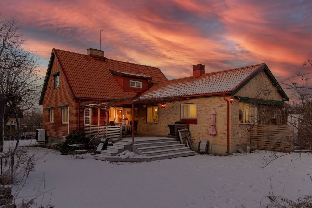 Hus om 153 + 80 kvm finns allt du kan önska dig för att skapa ett hem fyllt av värme och glädje. Med en planlösning som passar för barnfamiljen, kombineras funktion och hemtrevnad i en trivsam miljö. Entréplanet bjuder in med ett lantligt kök där vedspisen skapar en genuin atmosfär. Här kan du samlas kring matbordet för middagar och samtal. Från matplatsen leder altandörrarna ut till en altan, platsen för sommarens grillkvällar och umgänge med familj och vänner. Härifrån leder trappen dig vidare ut till en lummig trädgård. På detta våningsplan finns även ett tv-rum, två sovrum samt ett helkaklat badrum och en tvättstuga för vardagens alla behov.