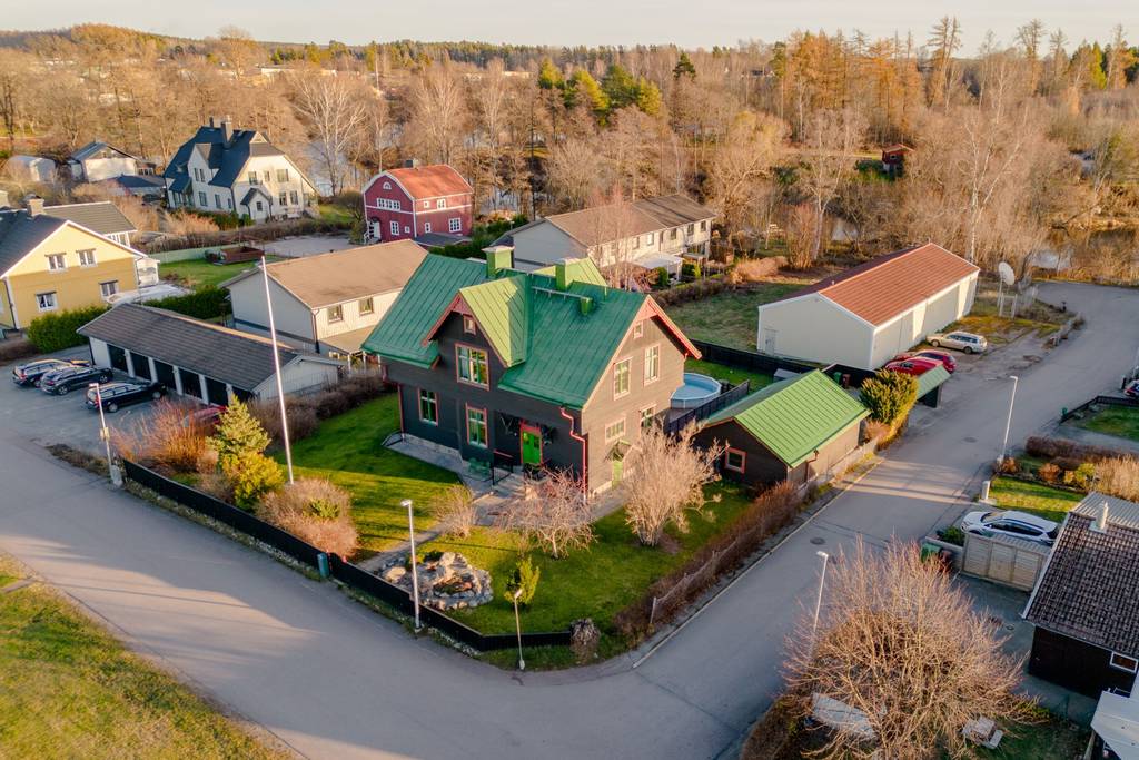 Fastighet belägen i hjärtat av Kolbäck, med åns porlande som en kuliss vid gatans slut. Här möts dåtidens charm och modern komfort i en, och varje vrå bär på en historia som väntar på att bli en del av ditt liv i ett nytt kapitel. Huset, vars svartmålade träfasad med röda knutar och gröna detaljer skapar en kontrast mot landskapet och bär på ett unikt arv. Med sin ståtliga gestaltning, prydd av eleganta örnar vid entrén, är detta ett hem som lämnar ett bestående intryck. Huset har sitt ursprung på 1800-talet och efter en brand byggdes huset upp i sitt originalutförande 1978, vilket ger ett hus med äldre charm och nyare byggkonstruktion.