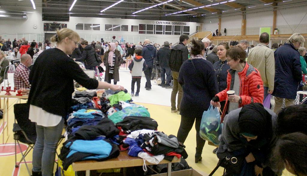 När loppisen har öppnat klockan 10 båda lördagarna har kön sträckt sig långt från entrén.