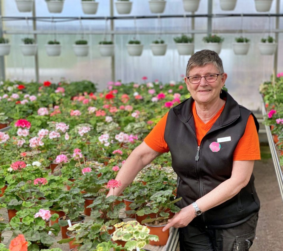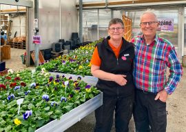 – Pelargoner är vi lite kända för, vi har dels ett stort utbud av moderna sorter men framförallt för vårt egna moderplantsmaterial med unika sorter, och de har blivit otroligt populära. Det har jag hållit på med i 20 år i samarbete med Mälardalens pelargonsällskap. Vi odlar bland annat mårbacka och rosenknoppspelargoner.