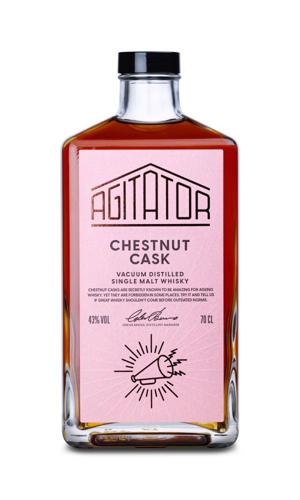 Den 20 mars lanseras Chestnut Cask i whiskymakarens eget ordinarie utbud och Systembolagets beställningssortiment. ”Vi var först i världen med att lägga whisky på hela fat av kastanjeträ”, säger Oskar Bruno, grundare och destillerichef på Agitator whisky.