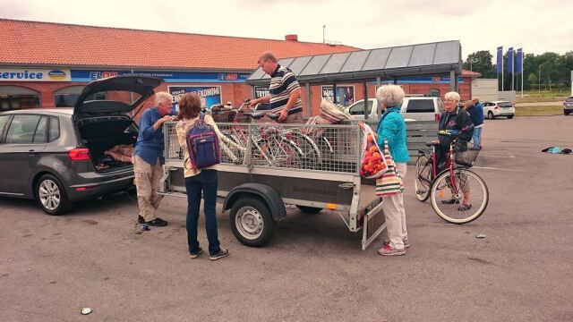 Proceduren med lastning av cyklar var snabbt avklarad. Vid 17-tiden åter hemma i stan och vi SPF Aktiva kunde summera att vi ännu en gång haft en härlig och varierande dag på cykel med många nya upplevelser och synintryck.