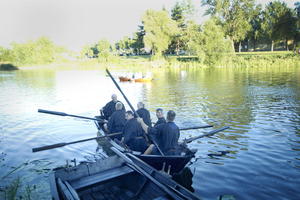 På torsdagkvällen gick den första medeltida kapprodden av stapeln i Arbogaån. Tre båtar deltog varav en var den nya båten Carolina.
