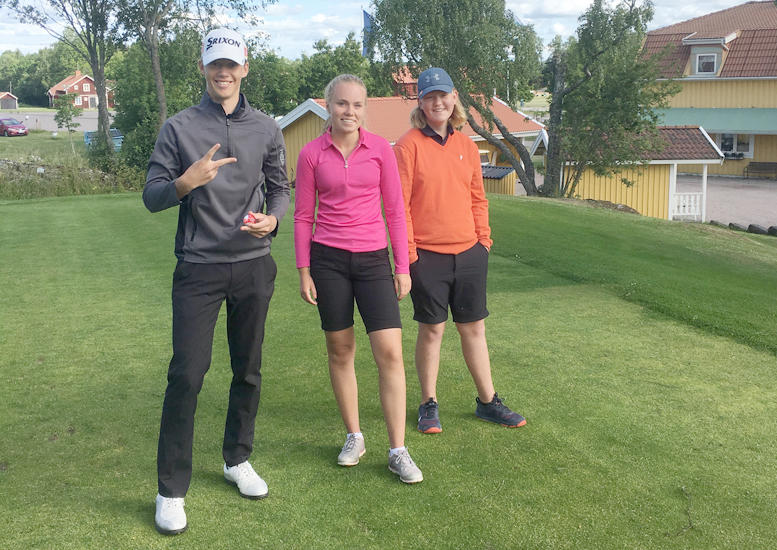 Robin Bojar, Moa Hultdin och Calle Ryberg från Arboga GK är klara för riksfinal i PGA Junior Am-tävlingen. FOTO: ARBOGA GK
