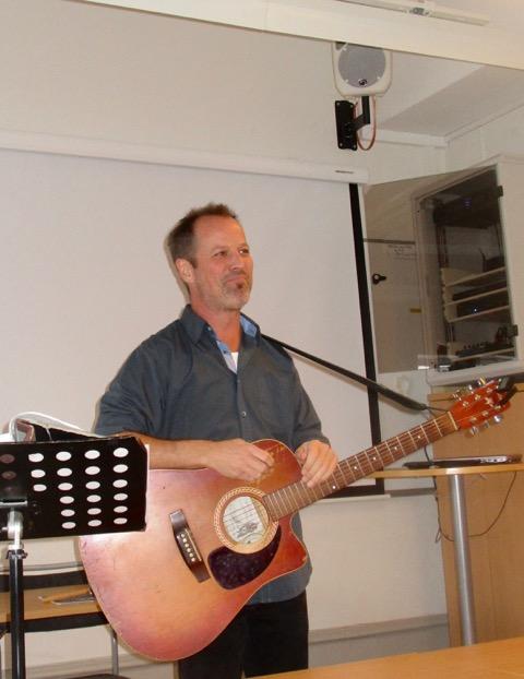 Arbogas egen trubadur Johan Ljungkvist underhöll med visor till gitarr. Foto: Insänt