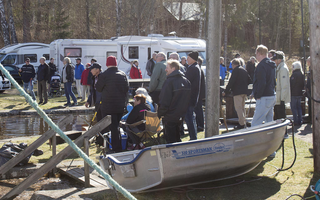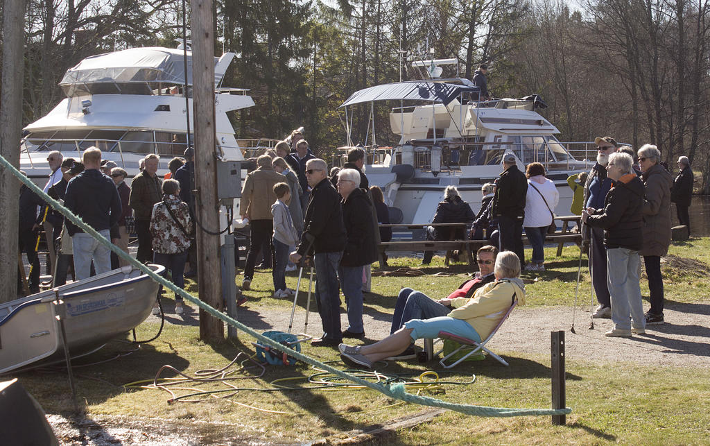 Stort antal nyfikna såg båtarna vid Hjälmare Docka lämna vinterplatserna.
