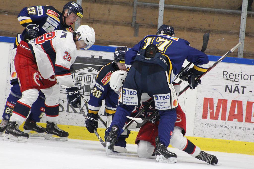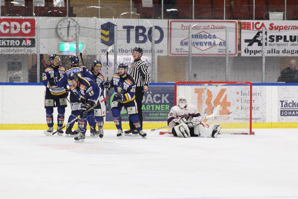 IFK Arboga hade fem raka förluster i Hockeyettans fortsättningsserie inför söndagens derby hemma mot Surahammar. Efter två mållösa perioder lossnade det rejält för IFK i den tredje.